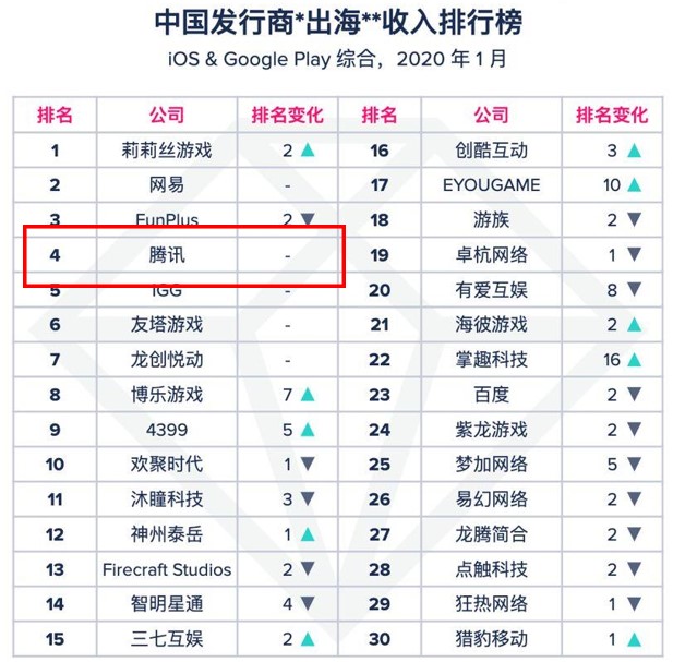 海外市場的好大家都知道,這也導致了各大遊戲商都來搶佔這塊大餅。因為遊戲產業“大者恆大”的特色,使得部分遊戲商想在中國市場立足變得十分困難,而海外市場就是最好的解決方法,這也使得海外遊戲市場的競爭越發激烈,從下圖遊戲商的波動就可以看出,即使大如騰訊在海外市場上也沒辦法穩居前三。海外市場雖然香是香,但騰訊能否在海外市場展現出統治力也會是未來騰訊遊戲收入能否持續成長的關鍵之一。